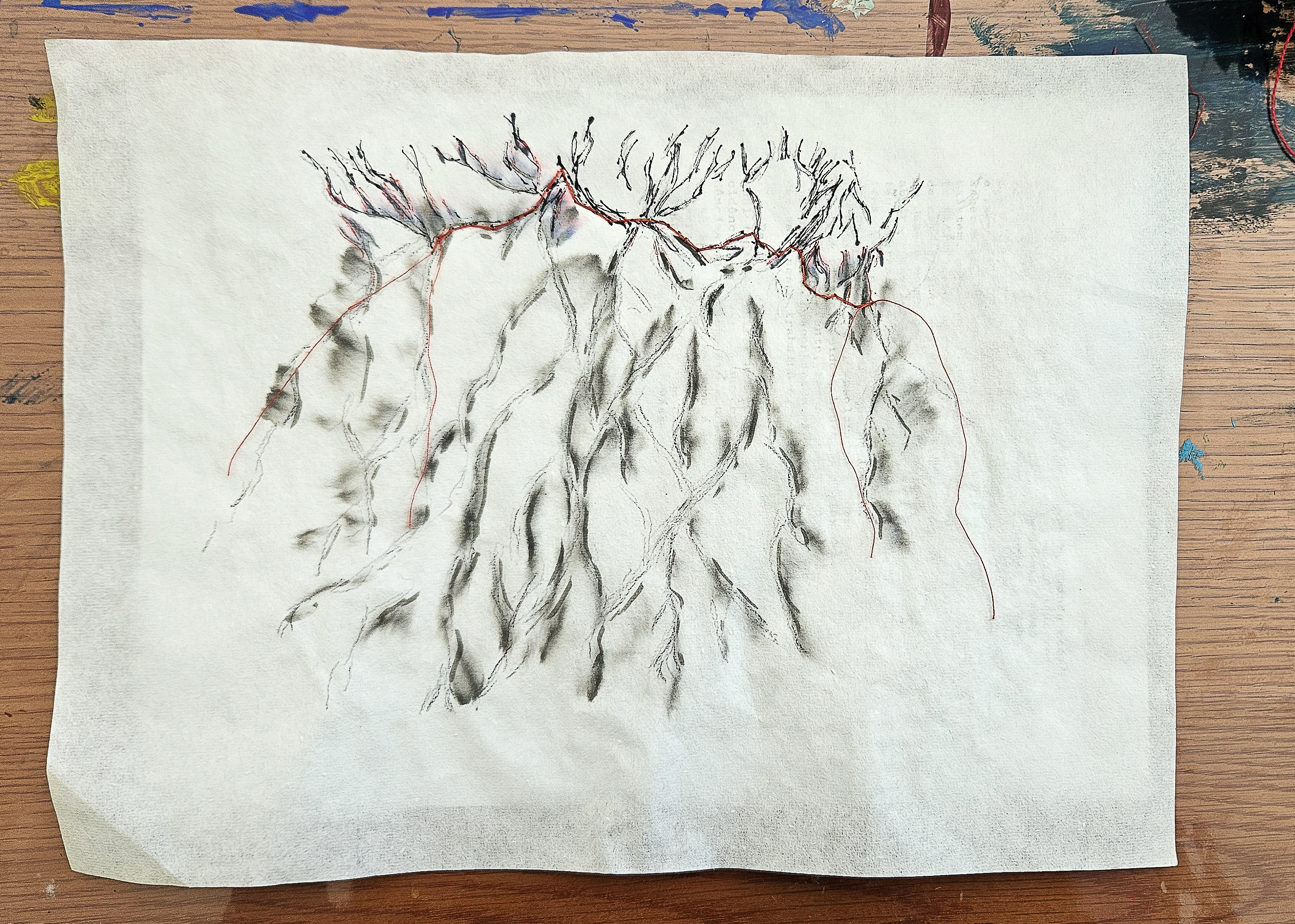 Le projet s’amplifie, 11 séries de 11 semaines chacune, toujours le même principe: l’échange épistolaire, le dessin, de mon côté, gagne des contours sculpturaux. Du sien, il se mélange à la céramique et aux cocons. Un désir d’amphores surgit. Nous le poursuivons.