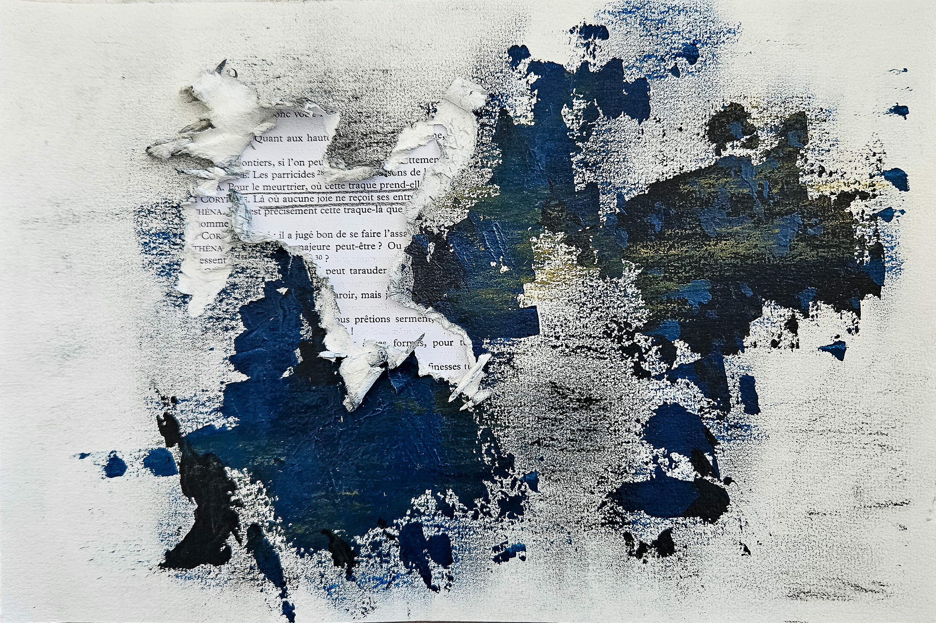 Um encontro entre as Erínias, as fúrias que vingam crimes violentos, e Ícaro, aquele que desafia os deuses para tentar tocar o sol. Desenho e palavra reunidos em trinta e dois dípticos, quatro séries de oito, cada uma resultante da interação entre desenho, pintura e escrita. O gesto e a natureza do artista: a água que dissolve o papel, o vento que o rasga, o fogo que queima os terrenos circundantes durante um incêndio, o ocre do calcário húmido que se espalha… Pelas frestas das imagens emergem excertos do texto trágico de Ésquilo, colocados ao lado de excertos de poemas criados a partir de mensagens de amor datilografadas.